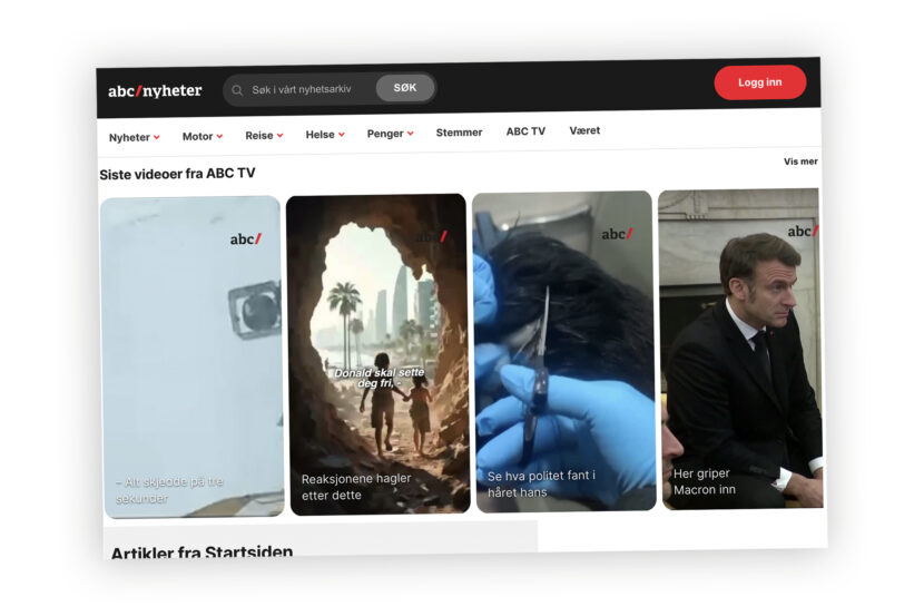 ABC nyheter vil at vi skal skrive «ABC Nyheter» når vi omtaler avisen. Men vi lar oss ikke korrigere av en avis som skriver feil i egen logo. (Faksimile: ABC nyheter.)