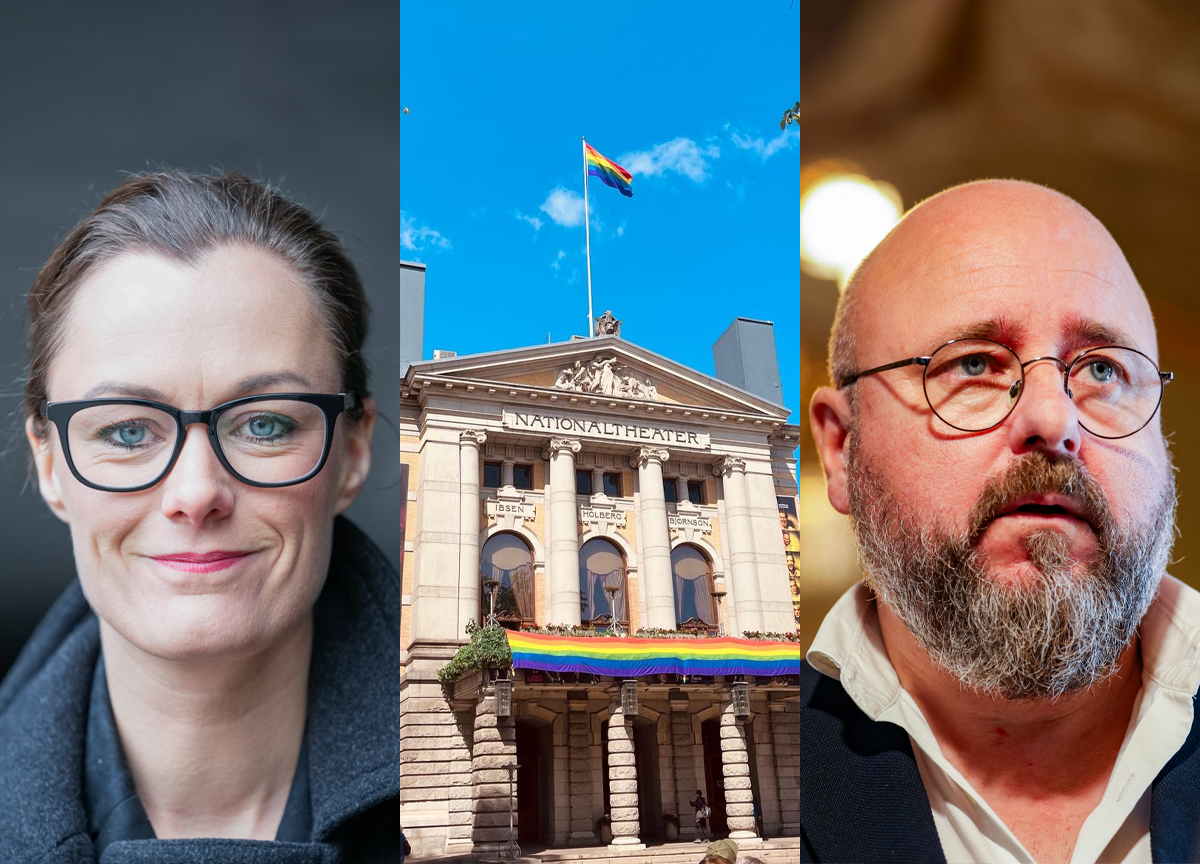 Nationaltheatret flagger for pride. Det skaper drama