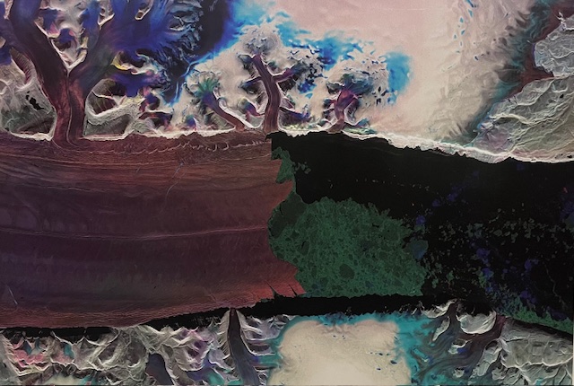Utstillingen «Looking Beyond» er todelt, og rommer 25 satellittfotografier presentert som kunstverk. Utstillingen holder hus i Solhallen på UiT. Da jeg ankom utstillingsrommene, ble jeg slått i bakken. Verkene sto på rekke og rad i en sirlig og gjennomtenkt kuratering, hvor alt syntes å stemme formidlingsmessig.
