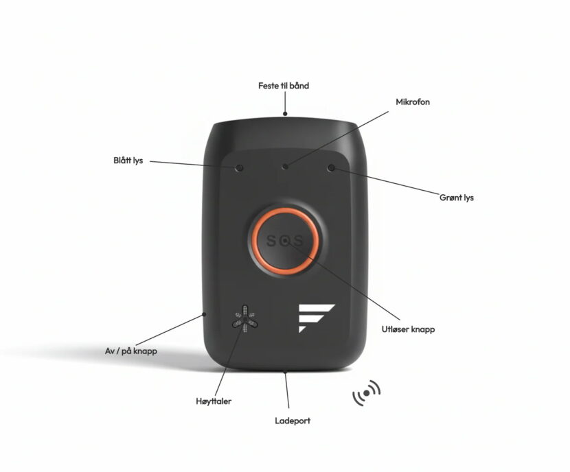 Sjelro Trygghetsalarm har 4G, GPS-sporing, innebygd fallalarm, toveis tale og er vanntett. (Foto: Sjelro Velferdsteknologi.)